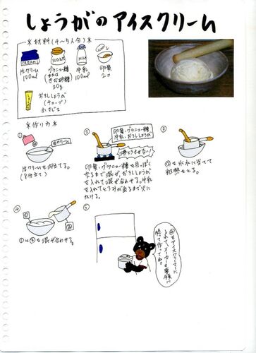 こんにちは!ジュピタ(ツキノワグマ・♂2歳)です。 6月になったけど、暑いよね~。ぼくが住む長野でも気温が高くなった地域もあるし。 というわけで、今日のレシピはアイスクリームのレシピです。「しょうがのアイスクリーム」。 しょうがはチューブタイプ…