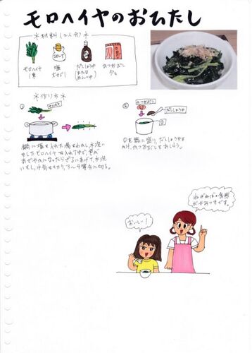 こんにちは。萌花(中1)です。 暑いですね~(^_^;) 今日のレシピは夏の野菜であるモロヘイヤ。今日はモロヘイヤを使った「モロヘイヤのおひたし」を紹介します。 モロヘイヤをゆでて、だししょうゆなどをかけるだけの簡単料理です。 今日はレナちゃん(3歳…